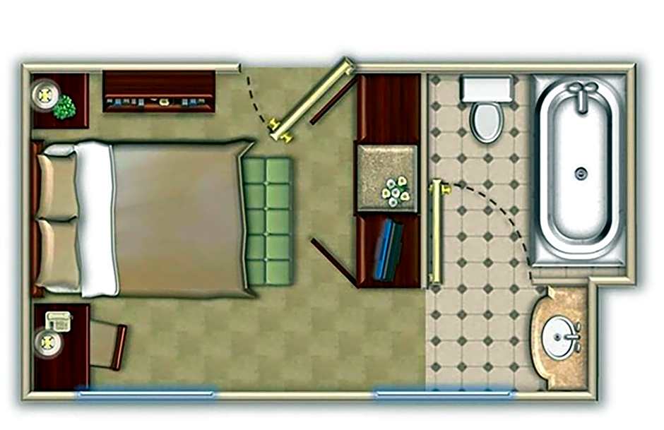 Please note, the double bed is 54” x 75”. This room 200 square feet and is located across from the elevators at the property.